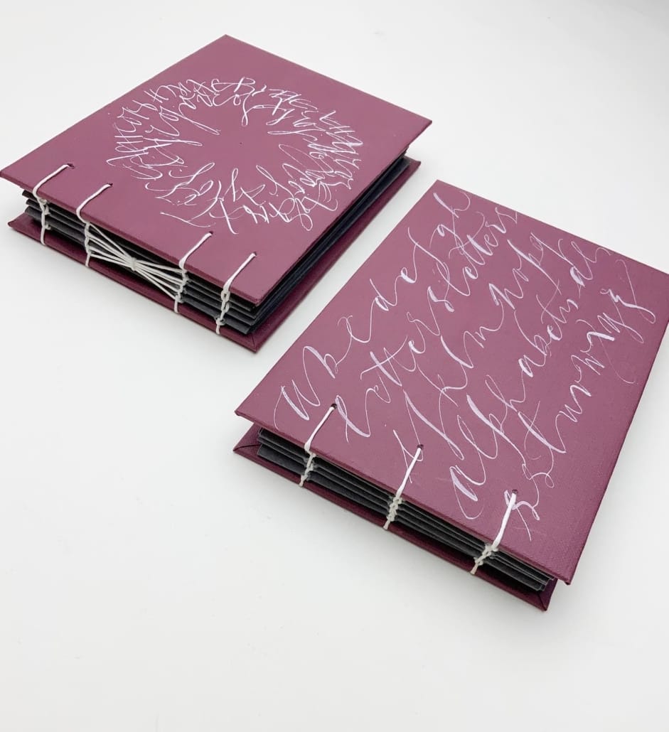 Εξωτερικά τα εξώφυλλα χειροποίητα γραμμένα καλλιγραφικά στο χέρι με λευκό μελάνι