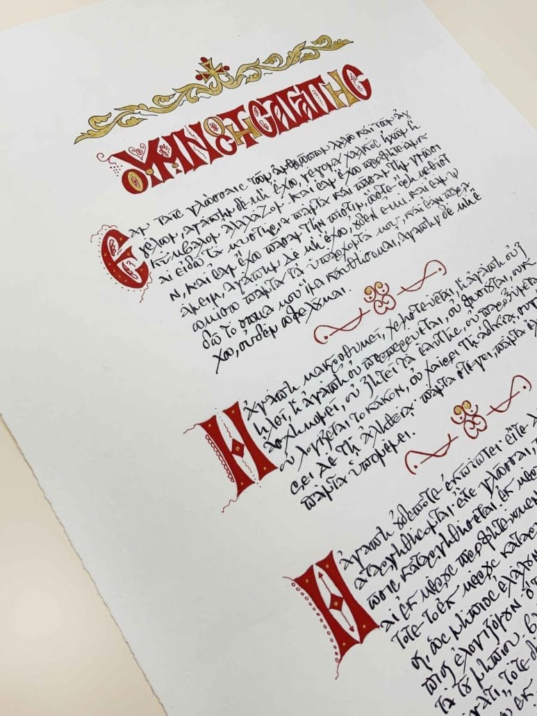 Έργο καλλιγραφίας “Ο Ύμνος της Αγάπης” του Απόστολου Παύλου