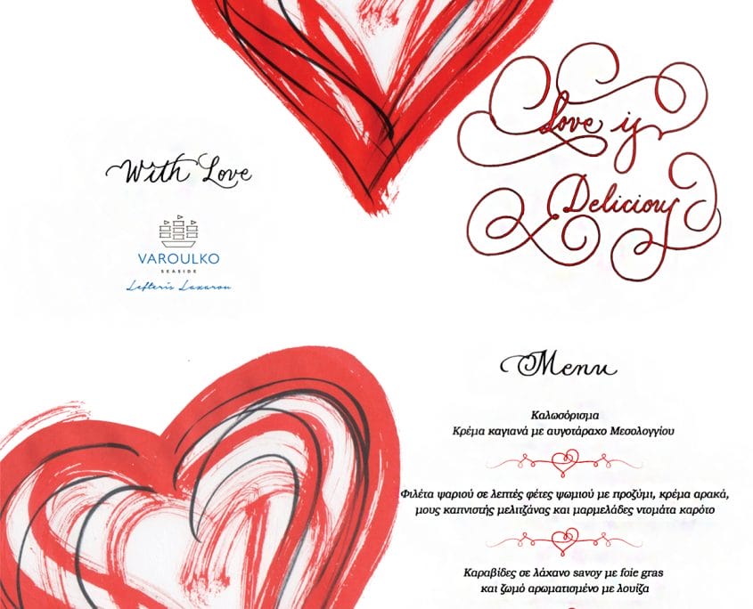 Είχα τη χαρά να δημιουργήσω το μενού του Βαρούλκο Restaurant για την βραδιά του Αγίου Βαλεντίνου.